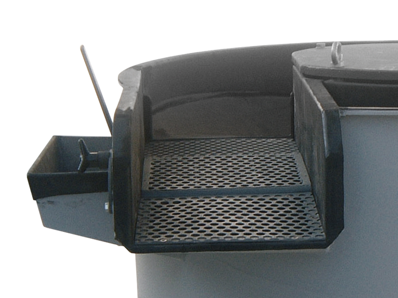 Asciugatrice vibrante a segatura adatto al settore orafo ed industriale, con vasca rivestita in poliuretano antiabrasivo, scarico automatico dei pezzi. Griglia setaccio intercambiabile.